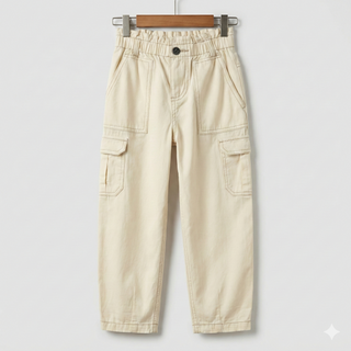 Hem okulda hem dışarıda rahatça kullanılabilen kız çocuk kargo pantolon; modern görünümü, fonksiyonel cepleri ve rahat kalıbıyla gün boyu konfor sunar. Bej rengi sayesinde kolay kombinlenir.